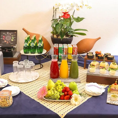 ארוחת בוקר בופה מסופקת לאורחים. האורחים מוזמנים לבר ממוקם על הגג כדי להרפות עם משקה.